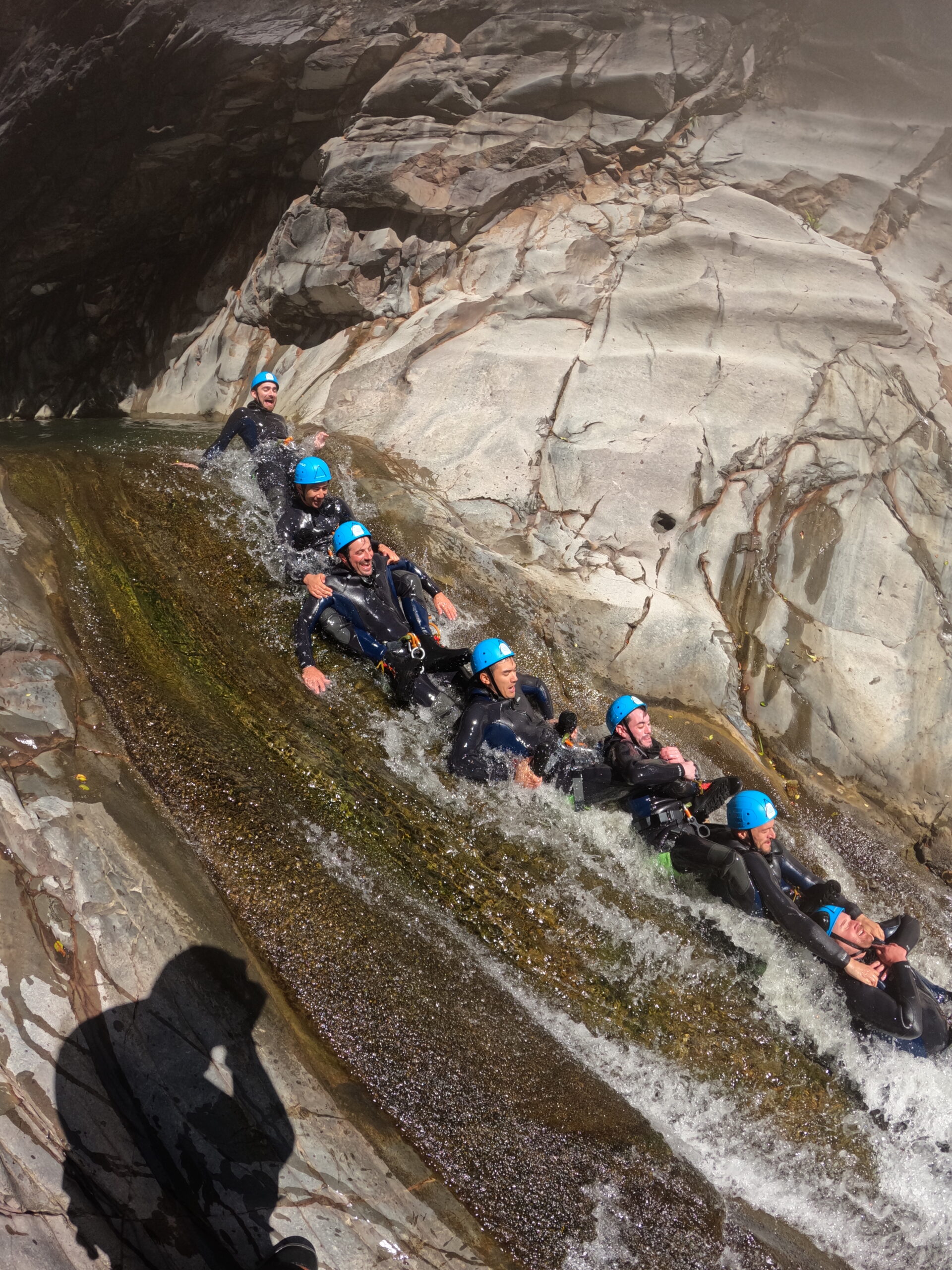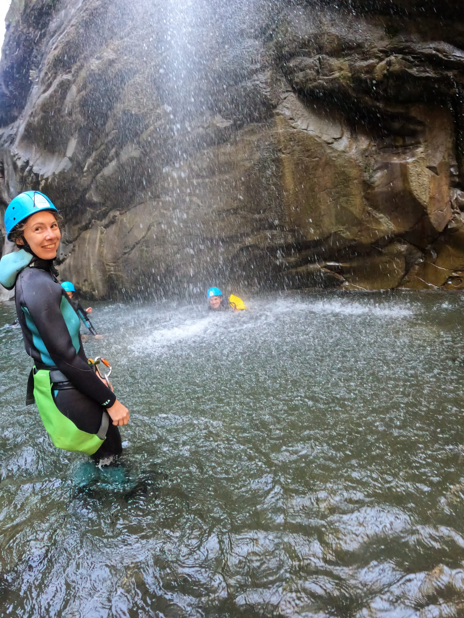 Pour ce canyon très aquatique, le moniteur vous équipe au mieux en fonction de la saison pour éviter de ressentir le froid.
