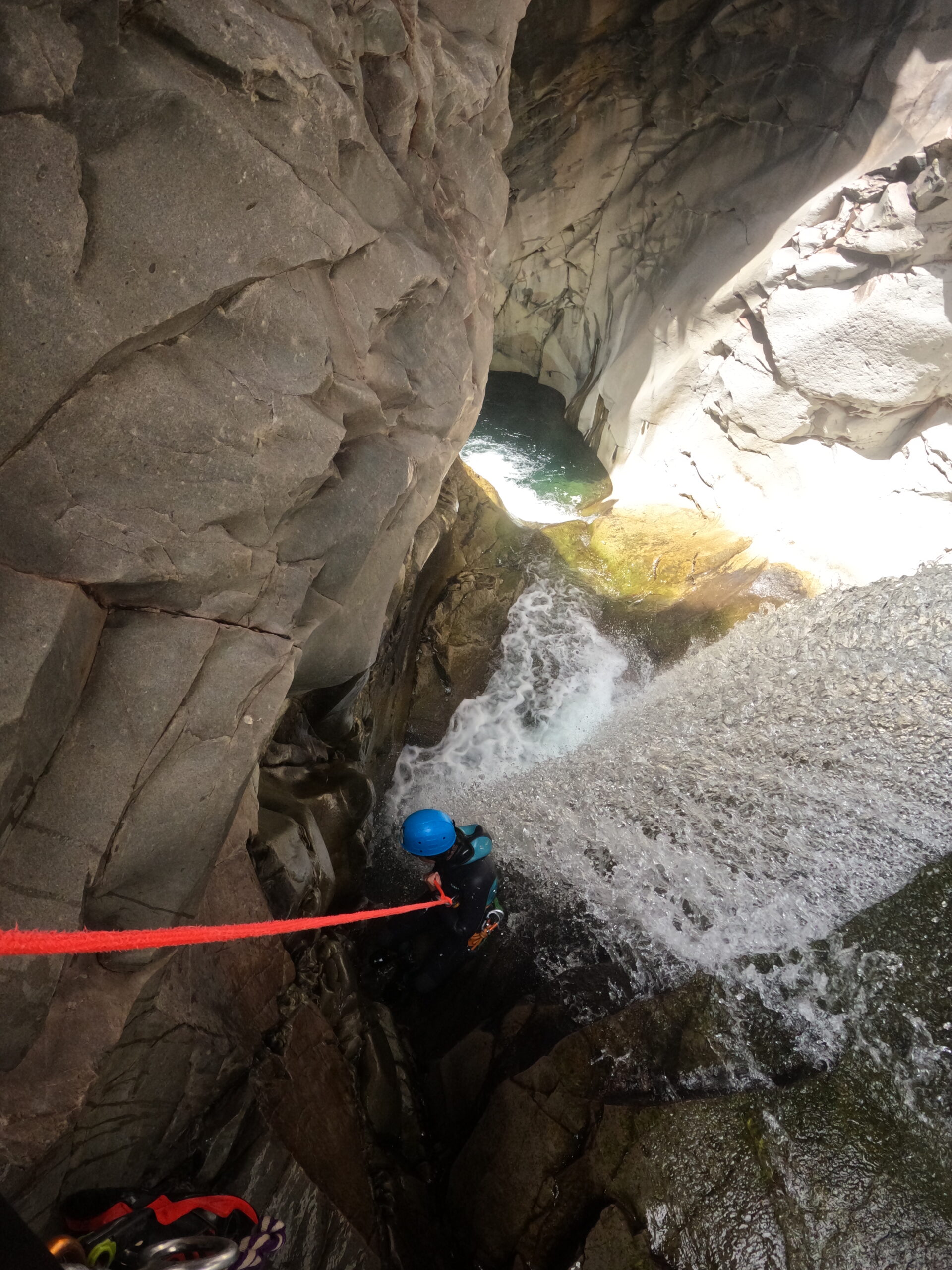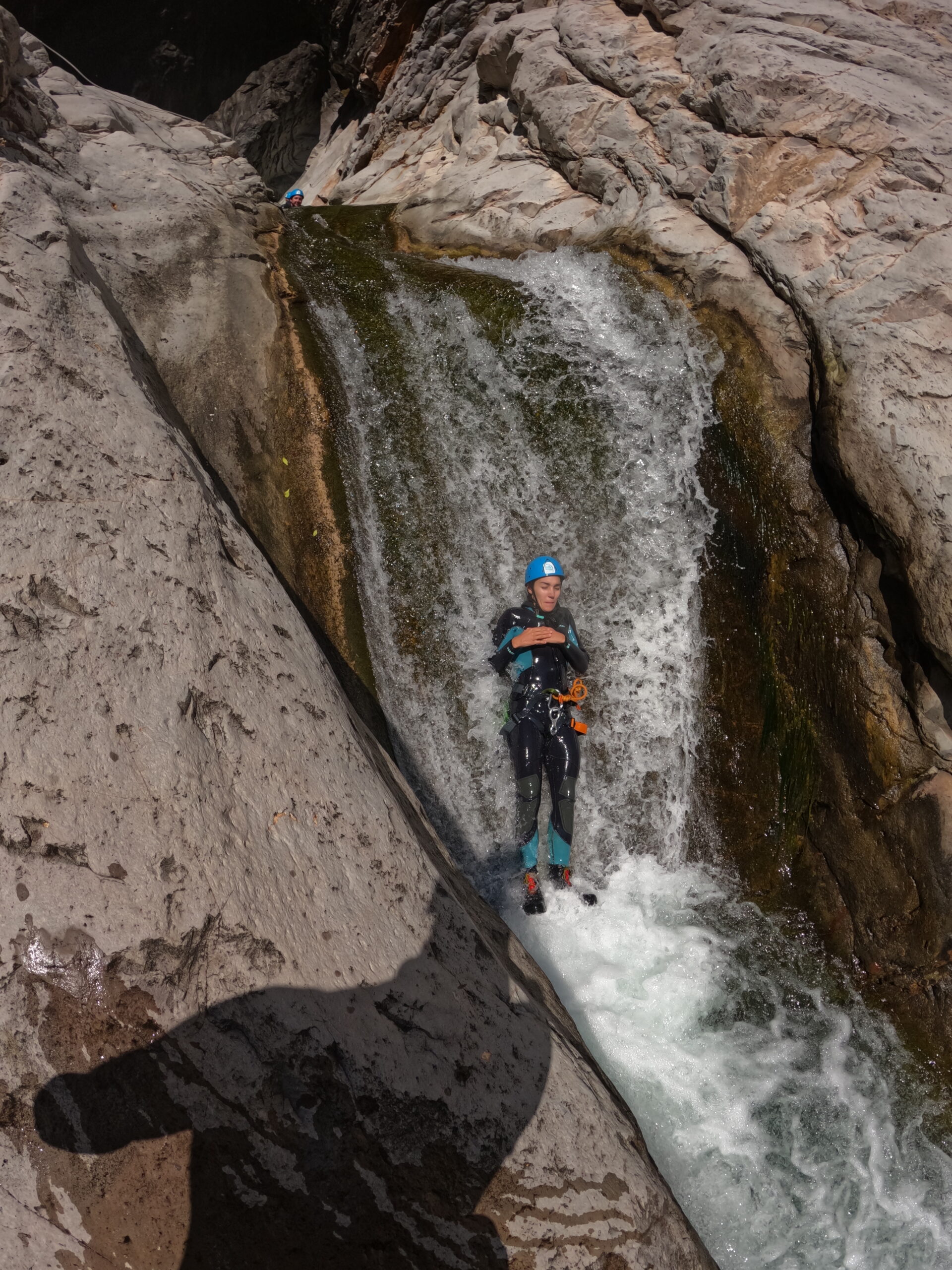 Au départ du canyon, le moniteur vous accompagne en douceur sur le premier obstacle : un impressionnant rappel pendulaire de 40m. Une fois dans le canyon, c’est un autre monde, aquatique et minéral avec de la nage et marche en bloc.